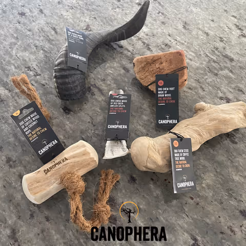 CANOPHERA offers a wide array of single ingredient chews including Coffee Wood, Briar Root, Sheep Horns, Red Deer Antlers, and Coconut toys. With no added ingredients, chemicals, caffeine, or sugar, pet parents can give these chews with confidence.